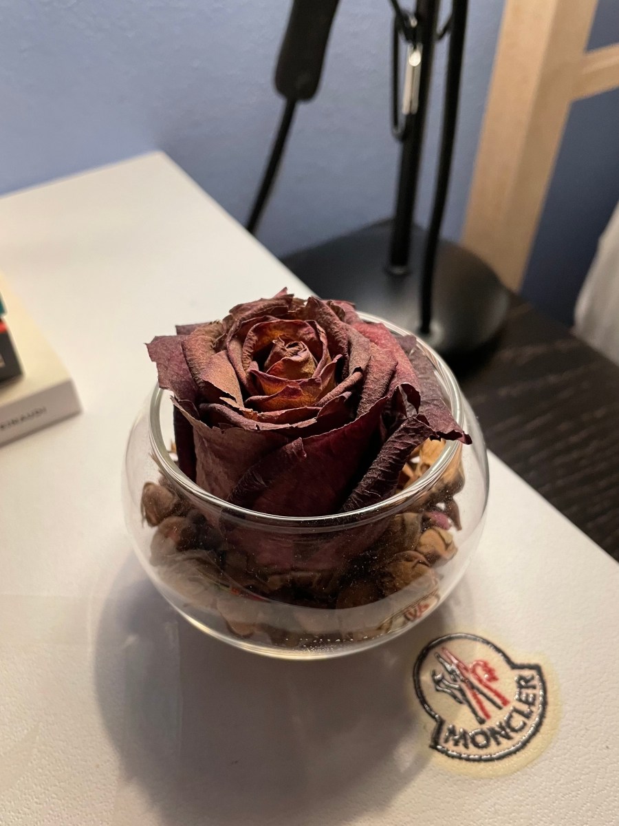 Ha mostrato una foto G. (classe quarta) per iniziare a parlare della sua gemma: “E’ una rosa del 14 febbraio 2021, giorno di San Valentino e del terzo meseversario col mio attuale ragazzo. E’ la prima rosa che mi ha regalato; non so perché ci sia così affezionata, però quando l’ho tenuta in camera un mese mia mamma ha deciso di metterla in questo contenitore di vetro con delle piccole rose che profumano sotto. La tengo sul comodino e quando mi sento un po’ giù mi metto a guardarla, sia perché mi ricorda una bella giornata sia perché al mio ragazzo sono molto affezionata anche come persona non solo perché è il mio ragazzo. Non vorrei mai perderlo né da un punto di vista amoroso né come amico: lo voglio presente nella mia vita. Poi, dopo varie sollecitazioni, me ne ha regalate anche altre ma a questa resto particolarmente affezionata e spero rimanga integra il più a lungo possibile”.
