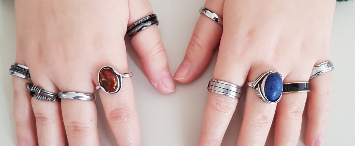 “Dopo un’infinita serie di pensieri sono giunta alla conclusione che la cosa più semplice era portare i miei anelli: sono la cosa che si vede di più di me. Non sono una persona a cui piace essere molto estrosa nei vestiti e quando inizio a fare conoscenza con qualcuno, una delle prime cose che mi viene detta o chiesta è qualcosa sugli anelli Oddio che belli, dove li hai presi?… Ogni anello ha una storia diversa, non tutte belle, anzi alcune sono proprio tristi. Li metto sempre nella stessa posizione, allo stesso modo, nello stesso ordine. Alcuni li ho persi, altri li ho cambiati perché la storia ad essi legata mi faceva troppo male.”