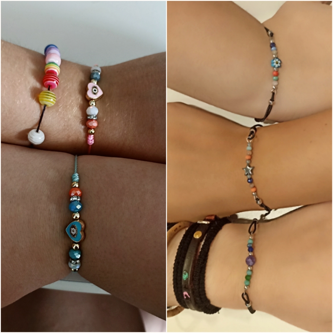 “Come gemma ho scelto di portare questi braccialetti. Sono stati presi rispettivamente a inizio e fine estate e li condivido con due mie amiche. Per me sono importanti perché oltre a rappresentare il bel rapporto che ho con loro, raccolgono un po’ anche la mia estate, che non è stata molto ricca o interessante, ma è stata resa speciale proprio da piccoli momenti passati insieme a queste persone” (M. classe terza).