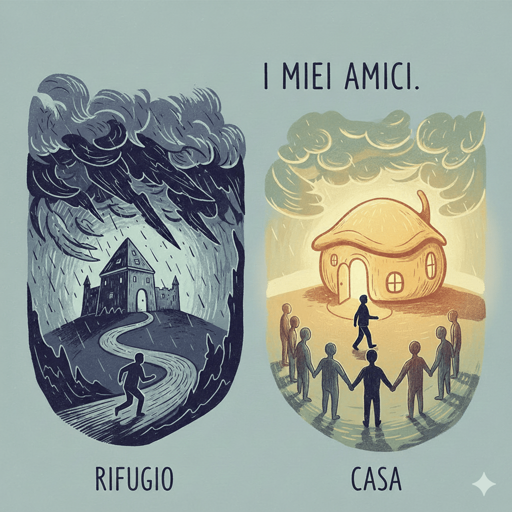 “Come gemma, quest’anno ho deciso di portare i miei amici. A fine dicembre, ho partecipato ad un campo animatori in cui ho avuto modo di riflettere su chi o cosa fosse il mio rifugio e chi la mia casa. Inizialmente non trovavo molta differenza tra queste due parole, ma pian piano ho capito che il rifugio è dove andiamo se cerchiamo di scappare da qualcosa che non ci fa stare bene, mentre la casa è dove puoi andare sempre, nel bene e nel male. Ho fatto fatica nel trovare qualcosa di diverso per entrambe, ma sono finita per dire la stessa cosa sia per la casa che per il rifugio… I miei amici. I miei amici sono la cosa più importante che ho. Mi stanno vicino in ogni situazione e non mi giudicano mai, di conseguenza so che per loro non sarò mai sbagliata. Sono il mio rifugio perché quando mi succede qualcosa di brutto sono i primi da cui vado a raccontare tutto e sono i primi che stanno ad ascoltarmi per ore. Sono la mia casa, invece, perché con loro basta vedersi 5 minuti e già si sta bene. Con loro faccio di tutto e di più e sono felice di condividere le mie esperienze con loro. Sono molto fortunata ad averli perché penso che molta gente, specialmente della mia età, non abbia un gruppo di amici così e mi rendo conto che senza di loro sono persa. Mi fanno ridere in ogni momento e sono felice che sono proprio loro a farmi sorridere. Ovviamente non è sempre tutto rose e fiori, anzi, capita molte volte che discutiamo, però penso che le discussioni ci aiutino a crescere e a diventare più maturi. Sono contenta di aver avuto l’opportunità di litigare con qualcuno di loro perché siamo riusciti a migliorare e a legare di più. Sono grata di averli nella mia vita e spero davvero che rimangano per sempre”. (C. classe seconda).