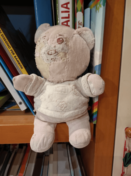 “Come gemma ho deciso di portare Gigi, il mio pupazzo. Gigi è apparso per la prima volta nella mia culla il giorno in cui sono nata e da lì non ci siamo più separati, essendo insieme da ben 18 anni. È sempre stato con me, il primo giorno d’asilo come l’ultimo, quando andavo in bicicletta e in vacanza, quando andavo a casa dei nonni e quando avevo gare e saggi di ginnastica artistica. Per quanto io sia razionale, per me Gigi non è “cotone e stoffa”. Anche quando da piccola me ne rendevo conto, e una parte di me stava male per il suo essere inanimato, era più forte di me fermare questa mia illusione. Forse più che illusione è un amore infinito ed eterno, che riconosce l’essere inanimato che Gigi è ma riesce ad andare al di là di ciò. Gigi è il posto in cui vive ancora la me bambina, che è capace di dimostrare un affetto puro e alla fine neanche richiesto, che è ancora innocente e dolce. Il mio pupazzo è sempre stato lì, dove lo lasciavo la mattina e lo ritrovavo la sera, ad ascoltarmi parlare dell’asilo, poi delle elementari e infine di argomenti sempre più grandi. Crescendo, mia madre ha cercato di regalarmi altri Gigi, simili o più grandi. Ma non c’è stato verso di cambiarlo, però gli altri li ho sempre tenuti con cura, lontani da me. (Tranne uno, che è stato seppellito brutalmente.) Uno dei ricordi più belli che ho legato a Gigi è quando mia nonna lo lavava, usando un ammorbidente molto profumato, che lo ripuliva per bene dopo essere stato a contatto con tutto. Poi mia nonna lo appendeva sul filo del bucato che scorreva tra due alberi con delle mollette e, non appena arrivavo a casa sua, mi diceva che c’era una sorpresa ad aspettarmi. Quindi lo trovavo lì, appeso in aria per le orecchie su un filo molto più alto di me. Era irriconoscibile per quanto fosse pulito e, benché amassi il sapone che usava e adorassi sentirlo per i primi giorni, non vedevo l’ora che riacquistasse il suo solito profumo. Mi piaceva anche vedere la nonna felice per essere riuscita a lavarlo per bene e che mi ripeteva di annusare quanto fosse buono quell’ammorbidente. Gigi mi ricorda, quando disprezzo la me bambina per l’innocenza e l’immaturità che penso mi abbia lasciato a volte, che è sempre stato oggetto di un amore puro e genuino, che non ha mai dovuto chiedere ma ha sempre ricevuto da una bambina di appena qualche anno” (M. classe quarta).