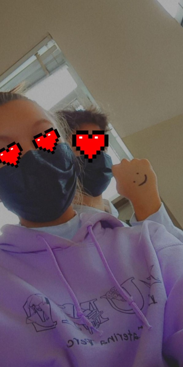 “Quest’anno, a differenza dello scorso, ho voluto portare una gemma felice e negli ultimi 11 mesi la mia felicità è stata lui. Questa foto è molto significativa per me perché, dopo due anni di covid, eravamo finalmente tornati in presenza e ciò ha significato tornare compagni di banco. Lo siamo sempre stati, sin dalla prima, ma dopo pochi mesi è scoppiata la pandemia che ci ha divisi, ma questo non ha fermato la nostra amicizia. Lo smile sul dorso della mano è un dispetto che gli facevo, ma che è poi diventato il simbolo del nostro rapporto. Lo scorso dicembre ha iniziato a cambiare tutto, sono entrati in gioco i sentimenti e ora stiamo felicemente insieme. È stato un anno molto difficile per me, dopo 13 anni il mio inconscio ha deciso di risbattermi in faccia il trauma della morte di mia mamma. Lui, però, ha fatto tanti piccoli gesti per strapparmi il sorriso, tra cui portare una commovente gemma su di noi (la gemma n°2046), venire con me al concerto di Irama (nonostante non gli piaccia) e accordarsi con mio papà per farmi una sorpresa portandomi al cinema. Quando sono con lui mi sento protetta e tutti i miei problemi spariscono. Vada come vada gli sarò sempre grata per tutto e rimarrà sempre il mio primo vero grande amore” (G. classe quarta).