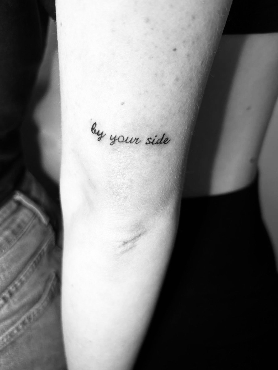 Io, mia sorella e mia cugina abbiamo deciso di fare questo tatuaggio insieme, con la scritta “by your side”, come un gesto simbolico per celebrare il legame unico e profondo che ci unisce. Non si tratta solo di un’idea condivisa, ma di una promessa che ci facciamo reciprocamente: qualunque cosa accada, saremo sempre al fianco l’una dell’altra, nei momenti felici e in quelli difficili. È il nostro modo di ricordarci che, nonostante le distanze o le sfide della vita, possiamo contare su questa connessione invisibile che ci unisce. Il tatuaggio rappresenta la forza della famiglia, che non è solo un legame di sangue, ma una presenza costante di affetto, supporto e comprensione. Ogni volta che guarderemo il nostro “by your side”, sarà un promemoria di quel legame che non si spezza mai, un segno indelebile di una presenza che va oltre il tempo e lo spazio”.