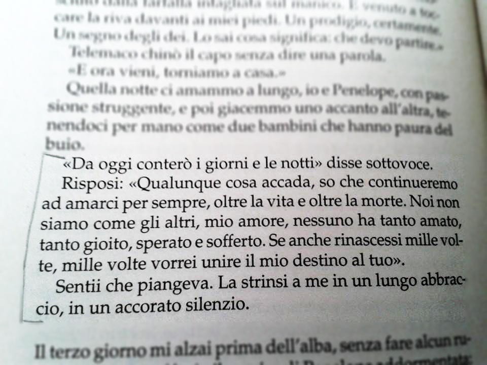 E’ una gemma storico-letteraria quella proposta da R. (classe quarta). E’ il libro “Il mio nome è Nessuno. Il ritorno” di Valerio Massimo Manfredi. “Di solito è un genere che non piace molto, ma a me sì. E’ la storia della vita di Ulisse, del suo ritorno: mette in luce il percorso verso gli affetti e le cose importanti della vita e penso sia una cosa che si possa vivere ogni giorno. Mi è piaciuta questa modernizzazione della storia. Lo consiglio anche per l’equilibrio tra le descrizioni e i dialoghi. Ci tengo a leggere un breve pezzetto del dialogo tra Penelope e Ulisse poco prima della partenza dell’uomo per l’ultimo viaggio”.