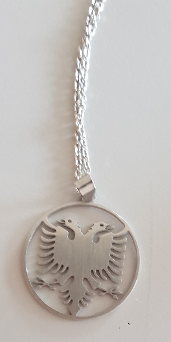 “Ho portato questa collana che rappresenta la bandiera dell’Albania, l’aquila a due teste perché sono nata in Italia ma ho origini albanesi e mi sento più albanese che italiana. Come la maggior parte delle persone che hanno origini diverse da quelle italiane, c’è sempre stato qualcuno che scherzava o prendeva in giro per queste origini, ma non mi sono mai vergognata per questo motivo, anzi. Quando vado in Albania, quasi ogni estate, mi sento proprio bene, spensierata e allegra, anche perché là ci sono tutti i nonni e due delle mie zie: là ci ritroviamo con la maggior parte dei miei cugini e ogni anno impariamo a conoscerci meglio, ad apprezzare i cibi, le abitudini, le tradizioni. Anche la lingua, sin da piccola, sono sempre stata io a volerla imparare: sentivo i miei genitori parlarla ed ero molto curiosa di capire e conoscere. Questo è come il mio portafortuna”.